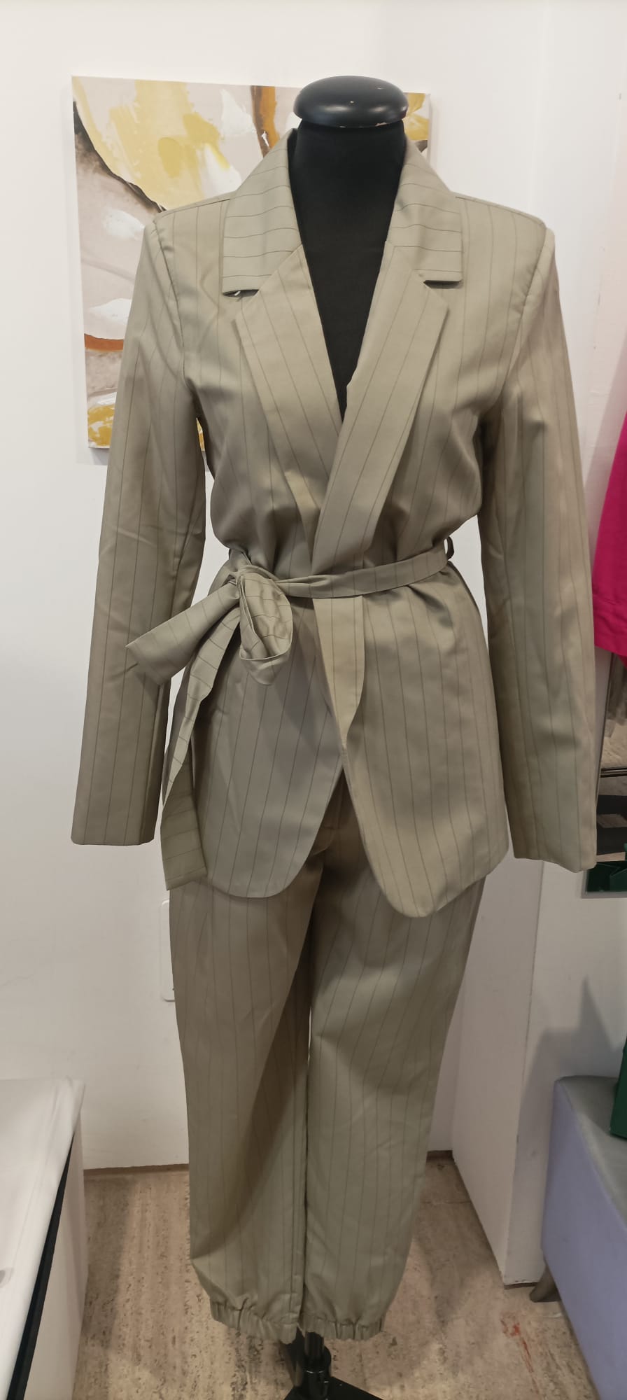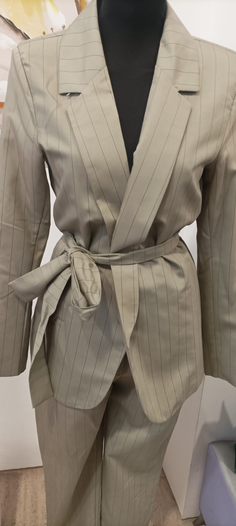 Meraviglioso tailleur gessato firmato Jaimè. Il suo tocco a righe lo rende unico e sofisticato. Ottimo per occasioni casual e formali.